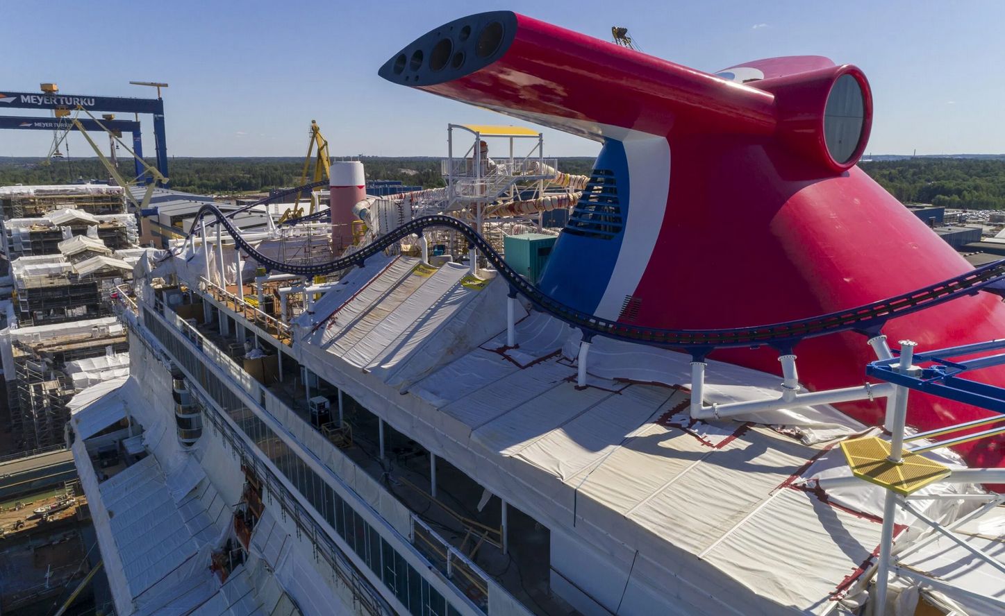 Jak pokazują opublikowane zdjęcia, budowa nowego Mardi Gras Carnival Cruise Line postępuje w stoczni Meyer w Turku w…