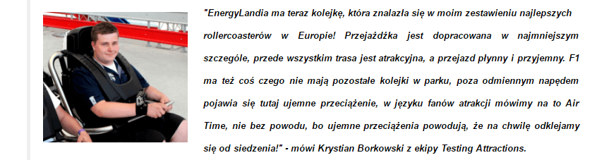 Rollercoaster Formuła 1 w parku rozrywki EnergyLandia jest już otwarty. Jako pierwsi, bo w czwartek 23 czerwca, mieli okazję przejechać się dziennikarze, dzień później jechali laureaci konkursu organizowanego na Facebookowym profilu parku, a od 25 czerwca przejażdżka jest już dostępna dla wszystkich!