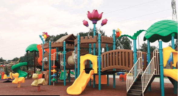 Plac Zabaw – miękkie poliuretanowe podłoże, ciekawa konstrukcja.