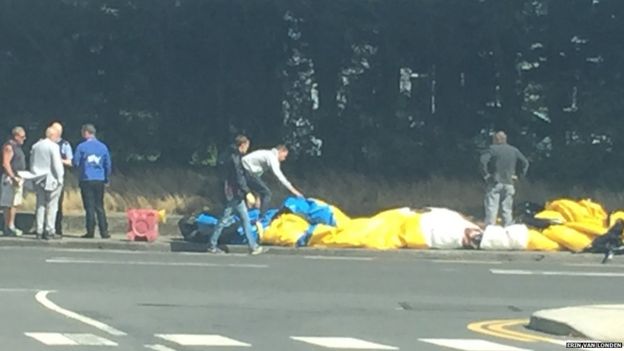 Dwunastometrowy dmuchaniec został przyniesiony przez wiatr z pobliskiego wesołego miasteczka. Wielki Minion nie zrobił nikomu krzywdy i został bardzo szybko unieszkodliwiony przez spuszczenie powietrza. Egzekucji dokonali kierowcy i przechodnie. Dmuchaniec wrócił w końcu na swoje miejsce.