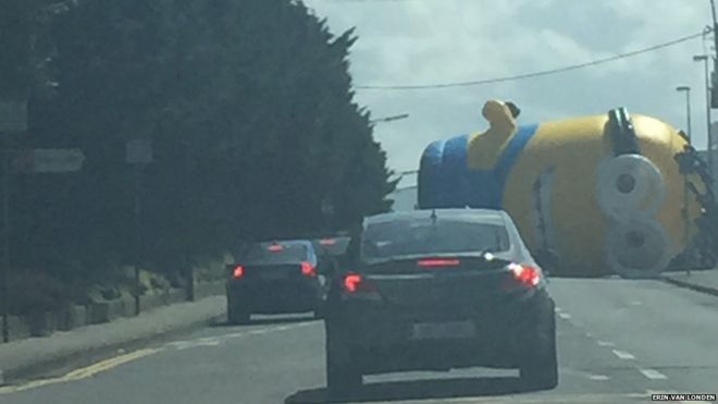 Kierowcy w Dublnie musieli być w niemałym szoku, kiedy drogę zagrodził im gigantyczny dmuchany stworek z filmu „Despicable Me”.