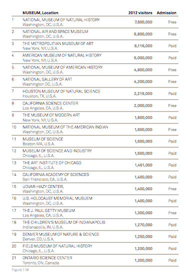 Opracowanie dotyczące Muzeów pojawiło się w TEA po raz pierwszy. Raport obejmuje oczywiście najbardziej odwiedzane lokalizacje co przy bardzo rozdrobnionym rynku pokazuje zaledwie małą jego część. W samych np. Stanach Zjednoczonych znajduje się bowiem ponad 17.500 tys. instytucji sklasyfikowanych jako Muzea. Raport pomija zabytki oraz miejsca kultu religijnego.