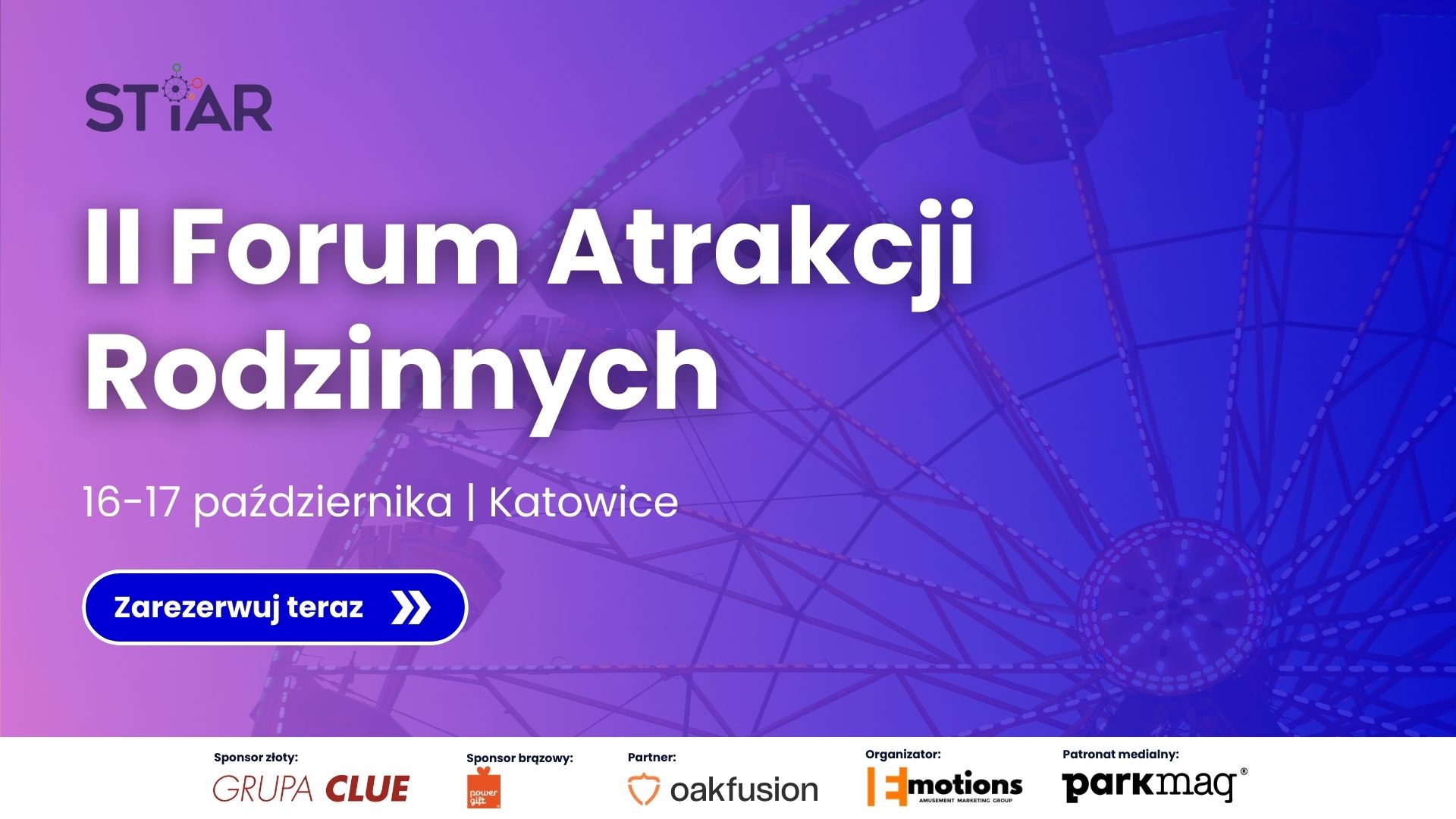 II Forum Atrakcji Rodzinnych w Katowicach, czyli wydarzenie skupiające przedstawicieli m.in. parków rozrywki, parków tematycznych, parków linowych, parków trampolin i aquaparków, rozpocznie się już za dwa tygodnie. Oznacza to, że została już naprawdę ostatnia chwila, by zapisać się na event. Warto się spieszyć, szczególnie że bilety cieszą się sporym zainteresowaniem, o czym świadczy ponad 80 zarejestrowanych osób. Bilety cały czas dostępne są na STRONIE INTERNETOWEJ wydarzenia.