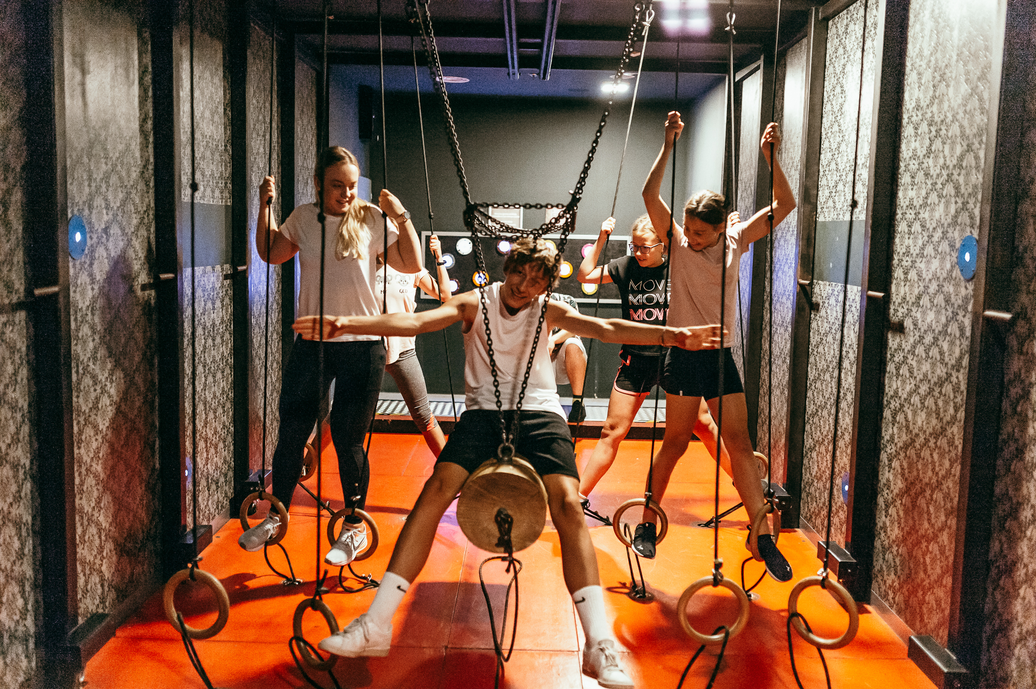 – Najpierw dzielimy się na drużyny. Musimy przebrać się w strój sportowy i dopiero wtedy rozpoczynamy zabawę. Dla przykładu w kategorii „Siły Fizycznej” w jednym z wyzwań trzeba przebiec po ruchomych elementach, nie dotykając czerwonych walców, będących wahadłami. W innej grze mamy pokój „Kolejka Górska”, w którym trzeba przedostać się z punktu A do punktu B i po drodze przyciskać niebieskie klawisze. Na kolejkę trzeba wejść i użyć siły mięśni. Oczywiście całej zabawie towarzyszą bardziej rozbudowane zasady. Wybieramy stopień trudności, zbieramy punkty, ale także skarby i ostatecznie nagrody.