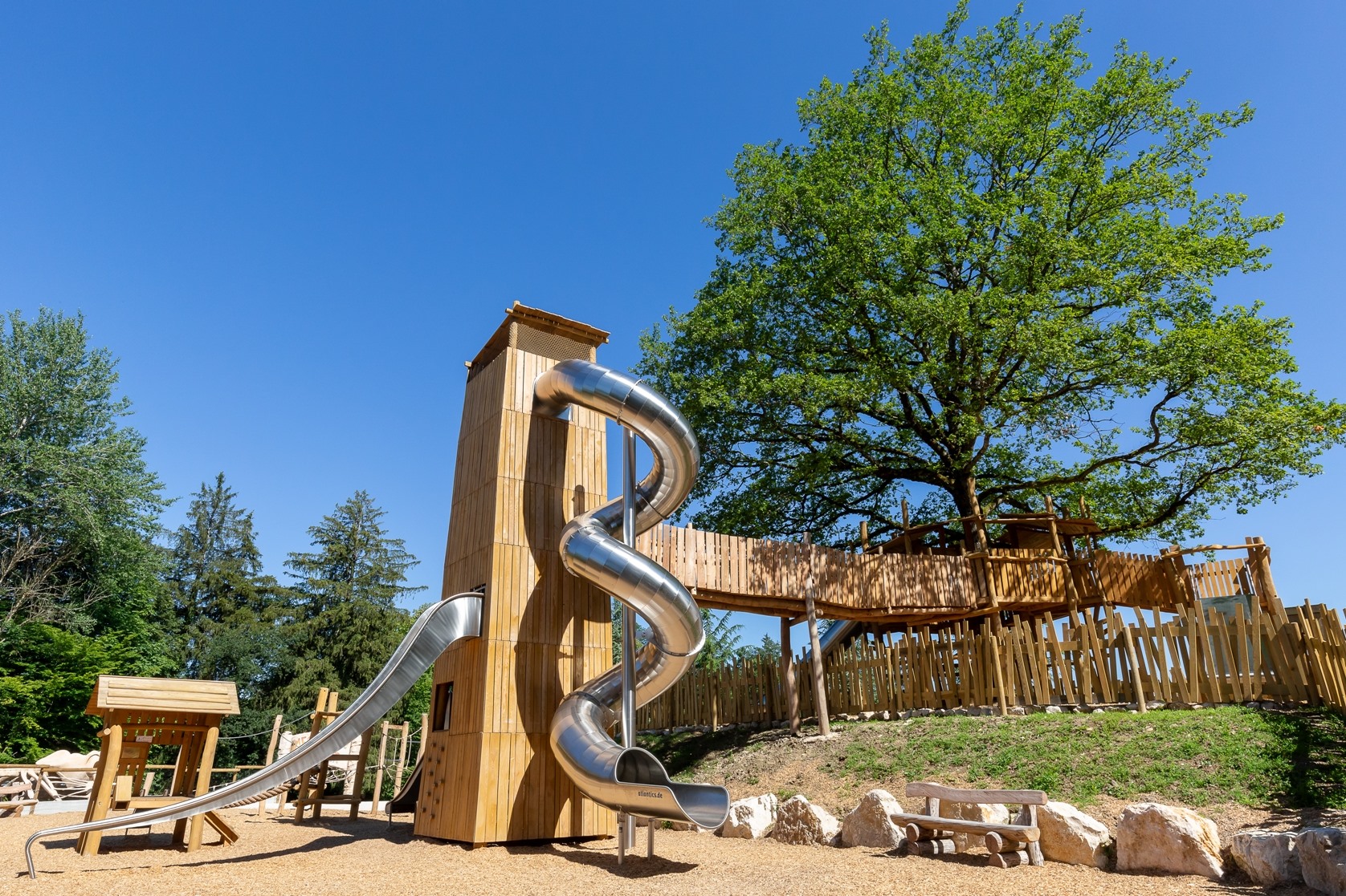 – Obecnie posiadamy 12 atrakcji. To m.in. Kryjówka piratów, Wioska alpejska, Opuszczona kopalnia złota, Gniazdo orła czy Tor przeszkód – 7 wież. Uważam, że ostatnia z wymienionych atrakcji uchodzi za najciekawszą dla dzieci. Goście pokonują mosty, wchodzą do wież i korzystają ze zjeżdżalni. To robi wrażenie. Wszystkie konstrukcje zostały wykonane z drewna. Oprócz atrakcji w parku znajduje się gastronomia, kawiarnia, dużo miejsca do wypoczynku i ukrycia się przed słońcem.